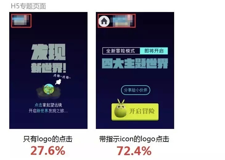 PC页面用户有点击左上角logo返回首页的习惯,手机页面的操作习惯可能会受logo设计影响。几个专题发现,用户对单纯的logo点击欲望不大,但是添加了返回或者其他标识的logo,点击率会增加。